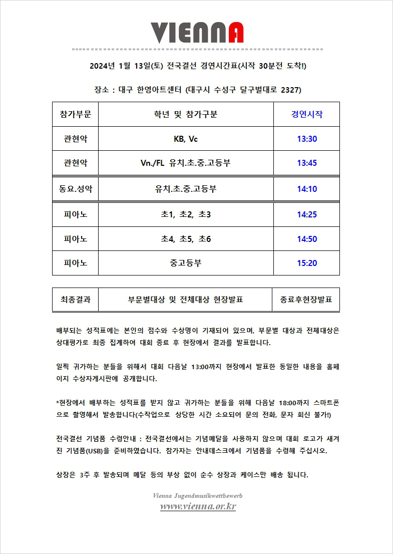 [Âü°¡½Ã°£¾È³»] Àü±¹°á¼± 2024³â 1¿ù 13ÀÏ(Åä) ºñ¿£³ª û¼Ò³â À½¾Ç ÄáÄí¸£